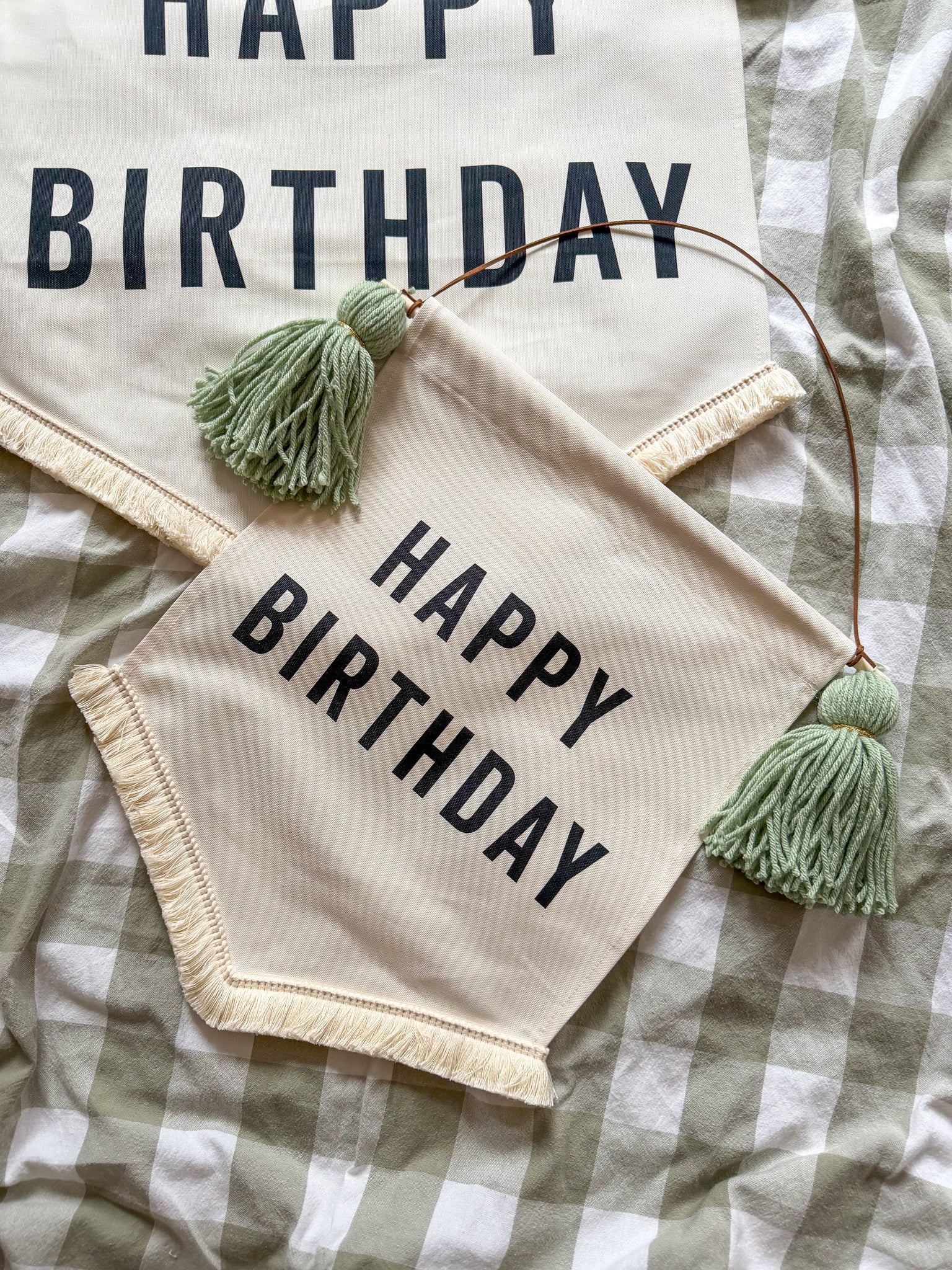 The Meg Cat Hooray classic 'Happy Birthday' fabric banner but in a smaller size! Custom made to order with your choice of coloured tassels. These handmade banners are made using thick 100% Natural Cotton Panama and have a beautiful, quality printed finish. The perfect environmentally friendly wall hanging for your birthday decorations. A wonderful centre piece for your party decorations and ideal photo backdrop for those all important birthday photos!